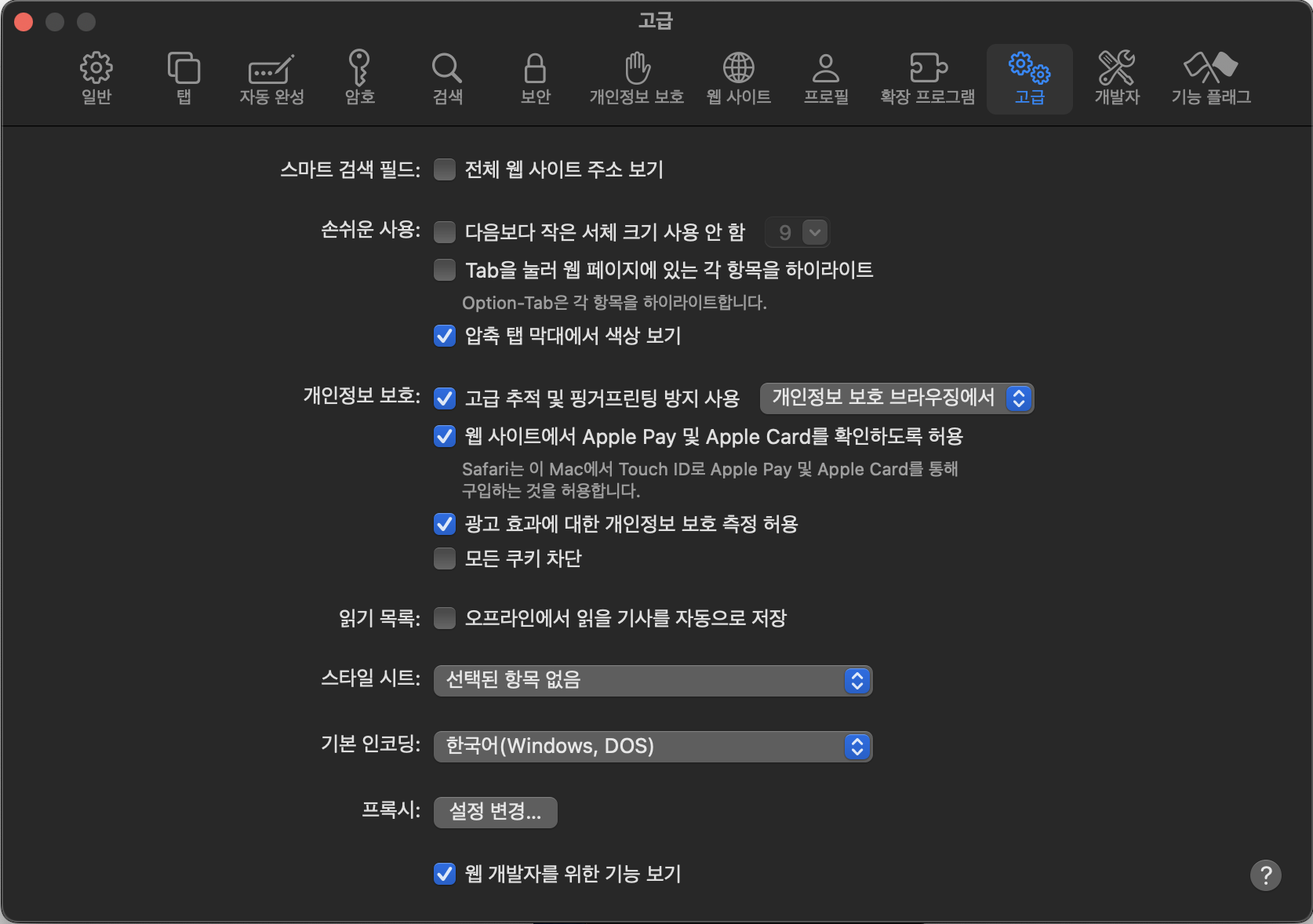 2. 고급 -> 웹 개발자를 위한 기능 보기 체크